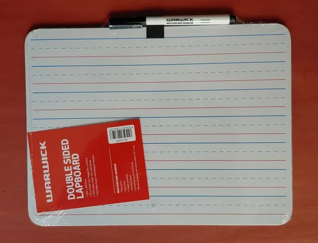 The Warwick Lapboard Whiteboard is double sided, with one ruled side and one blank, perfect for note taking and drawing diagrams. It is a great educational tool designed to conveniently fit in your lap, for use in the home or school. With the ability to use both sides it is ideal for planning or programming. The board easily wipes clean when using white board marker, such as the one included, which can be slotted into the handy pen clip.